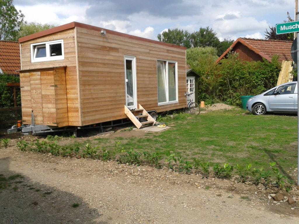 Entstehen werden 12 Stellplätze für Tinyhäuser auf Rädern (wie unseres im obrigen Bild) und ein Gemeinschaftsgrundstück, auf dem irgendwann in der Zukunft auch ein Gemeinschaftstinyhaus stehen wird.